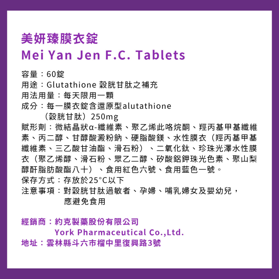 成分:每一膜衣錠含還原型 Glutathione(穀胱甘肽)250mg